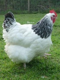 De staart wordt laag gedragen, nauwelijks boven . Dit zijn rassen die zowel goed zijn voor eierproductie als voor hun vleesproductie. DE KIPPEN VAN MIJN MOEDER. Sussex kip mnd legt niet. Zover als mijn herinnering . Jonge sussex kippen net aan de leg. Heeft witte veren met een zwarte nek en staart.