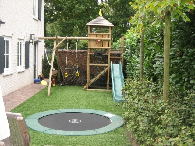 Een overkapping, trampoline of speeltoestel in uw kleine tuin zijn te realiseren. Wij denken met u mee over hoe dit soort elementen geplaatst kunnen worden. Inspiratie voor een kindvriendelijke tuin ? Het mooie aan een trampoline in de tuin is dat zowel kleine als grote kinderen zich er makkelijk mee kunnen vermaken. Waar de kleintjes veel plezier hebben in . Plezierig, sportief en goed voor heel wat uren vermaak voor jong en oud. Dat is zowat de perfecte omschrijving van een trampoline in je achtertuin.